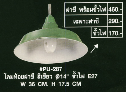 โคมห้อยฝาชี สีเขียว 14″ ขั้นไฟ E27
